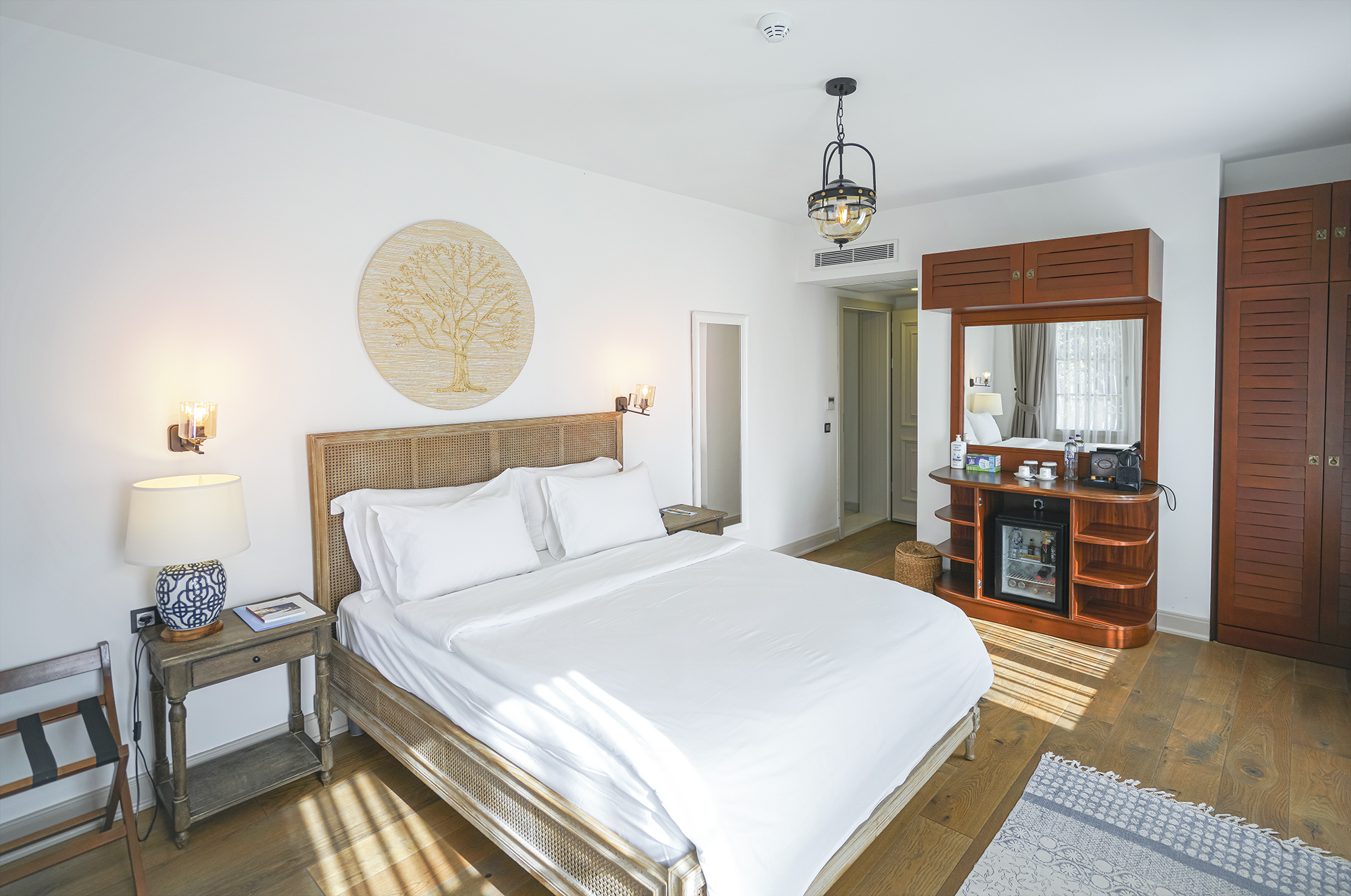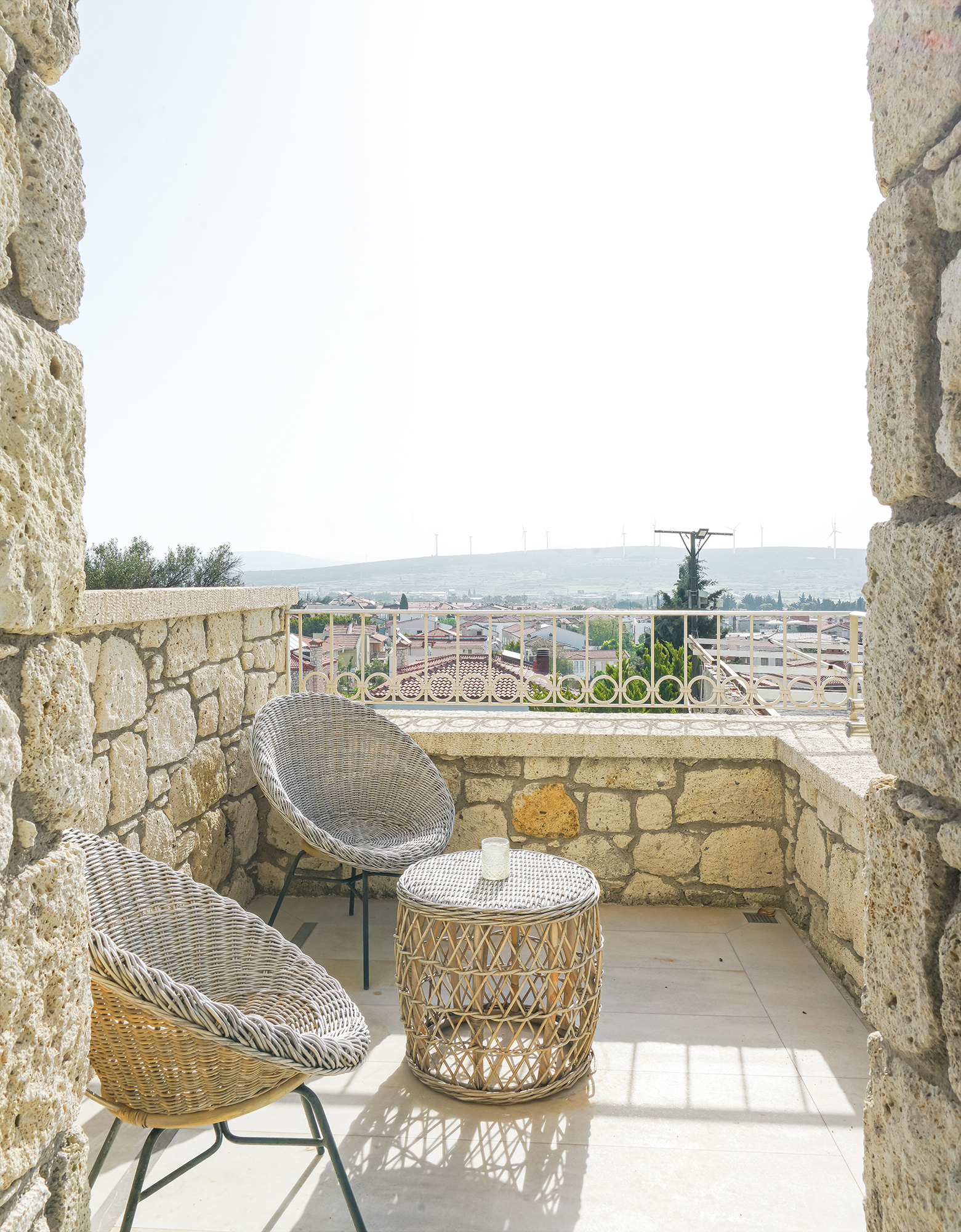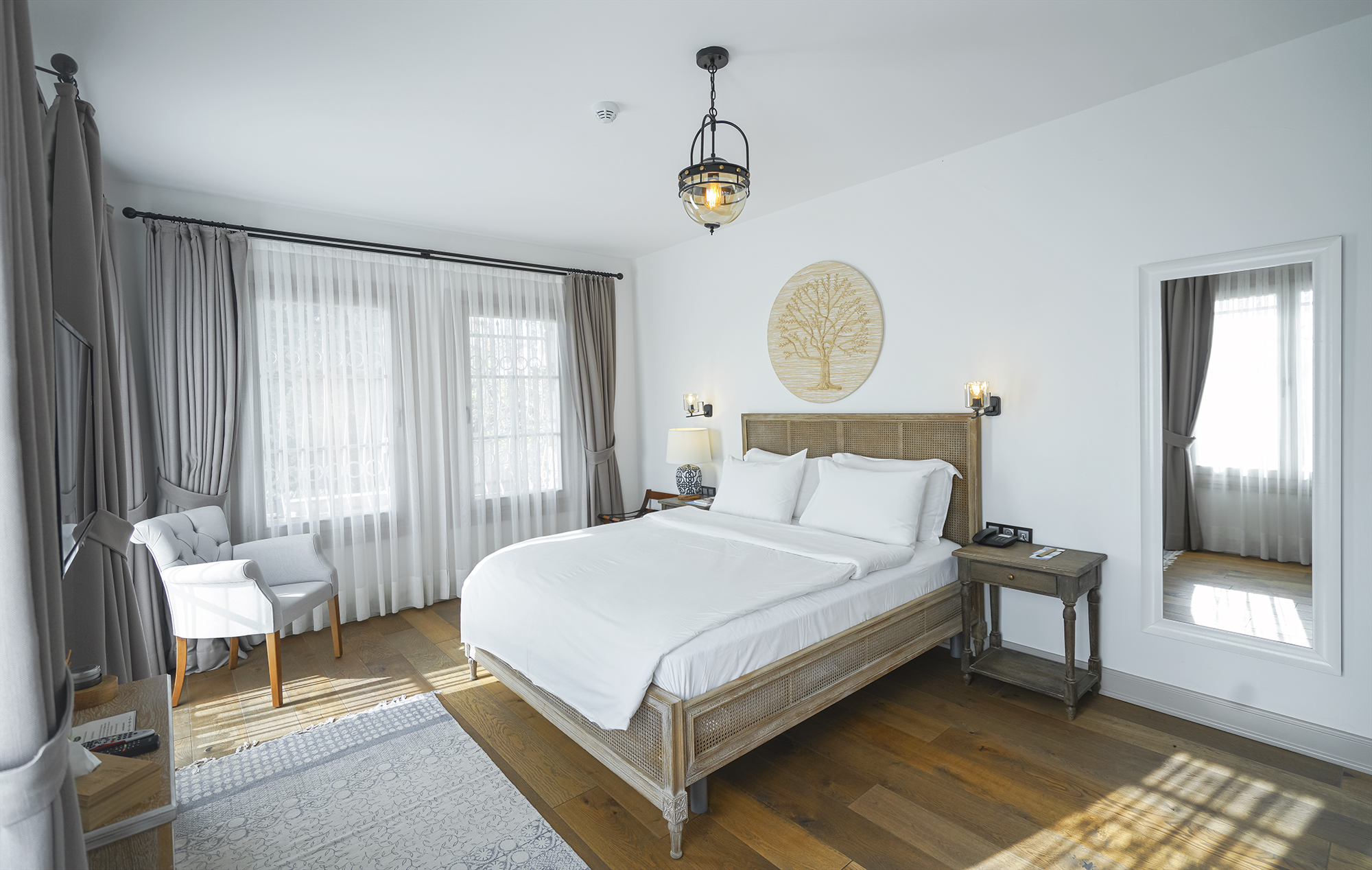 Agrovela Hotel bir yüzünü Alaçatı’nın meşhur yel değirmenine dönmüş, rüzgar güllerini ise arkasına almış, 400 yıllık tarihi taşlardan yapılan, içinde Alaçatı’nın bütün yerel öğelerini barındıran ve hemen önündeki küçük meydan ile Alaçatı’nın kalbinin attığı bir konuma sahip. Odalarımızın Alaçatı’nın yerel özelliklerini yansıtmasını ve misafirlerimizin tatilleri boyunca bölgemizin güzellikleriyle iç içe bir ortamda olmasını arzuladık. Geniş aydınlık odalarımız, taş binalarımızın serinliğini yaz boyunca sizi hissettirecek. Alaçatı mimarisinin vazgeçilmesi cumbalar ise, Alaçatı manzarasına bakıp kahve keyfi yapmak ya da serin bir yaz öğleden sonrası şekerlemesi için ideal.