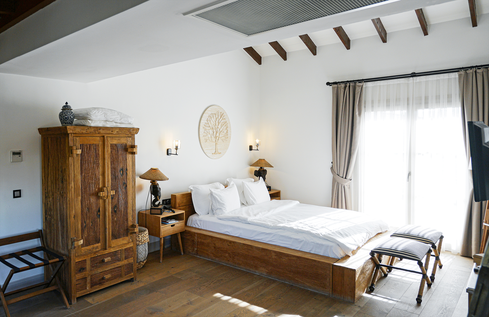 Agrovela Hotel bir yüzünü Alaçatı’nın meşhur yel değirmenine dönmüş, rüzgar güllerini ise arkasına almış, 400 yıllık tarihi taşlardan yapılan, içinde Alaçatı’nın bütün yerel öğelerini barındıran ve hemen önündeki küçük meydan ile Alaçatı’nın kalbinin attığı bir konuma sahip. Odalarımızın Alaçatı’nın yerel özelliklerini yansıtmasını ve misafirlerimizin tatilleri boyunca bölgemizin güzellikleriyle iç içe bir ortamda olmasını arzuladık. Geniş aydınlık odalarımız, taş binalarımızın serinliğini yaz boyunca sizi hissettirecek. Alaçatı mimarisinin vazgeçilmesi cumbalar ise, Alaçatı manzarasına bakıp kahve keyfi yapmak ya da serin bir yaz öğleden sonrası şekerlemesi için ideal.