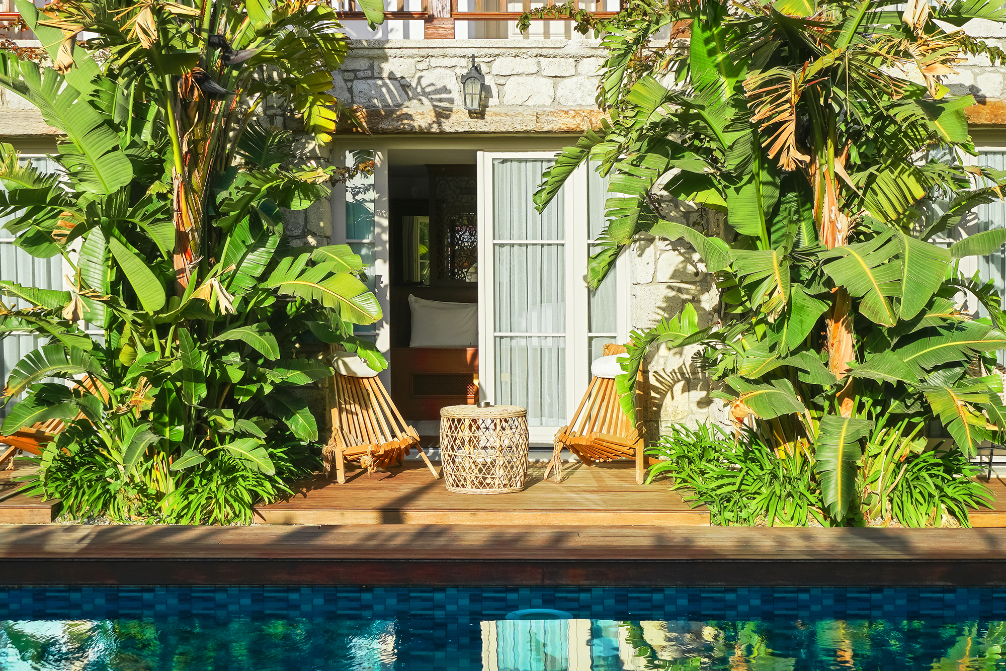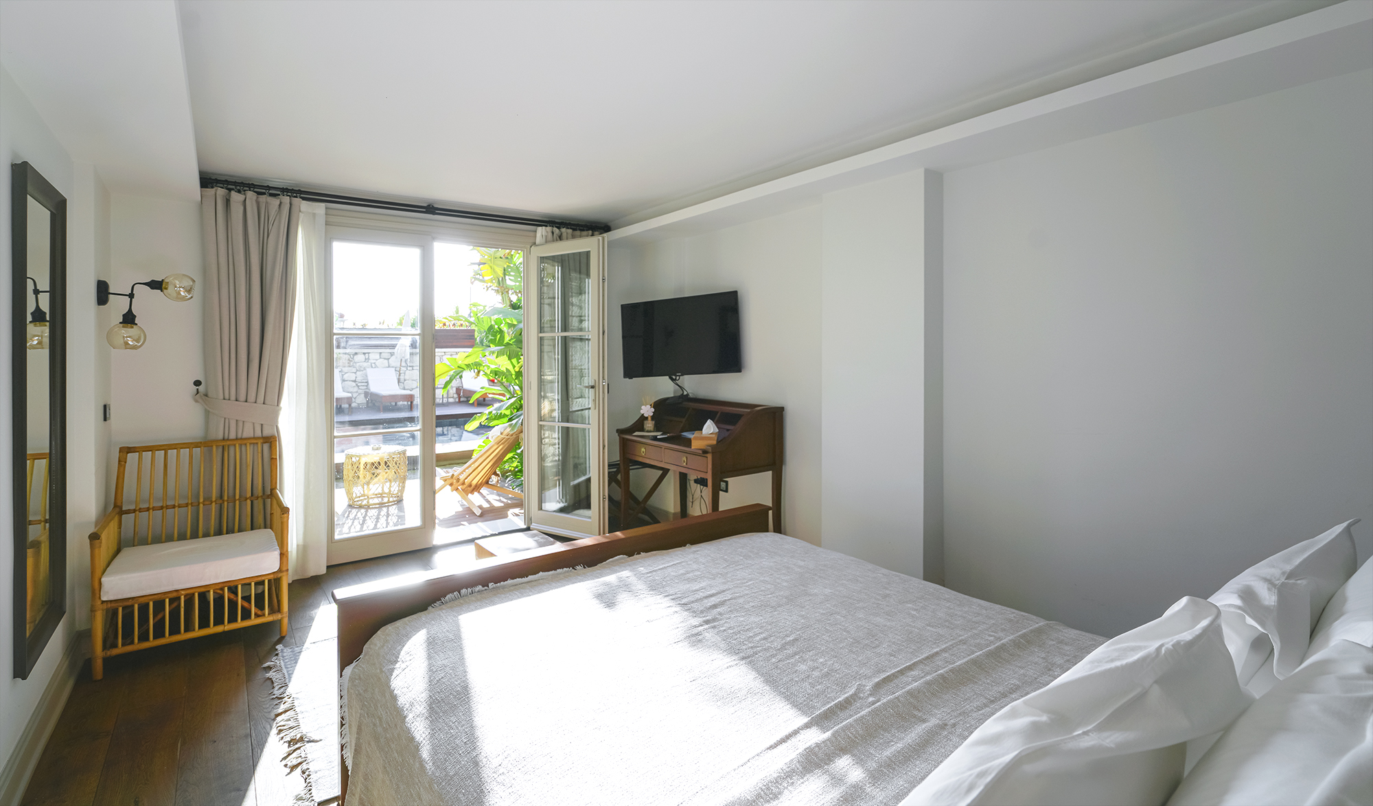Agrovela Hotel bir yüzünü Alaçatı’nın meşhur yel değirmenine dönmüş, rüzgar güllerini ise arkasına almış, 400 yıllık tarihi taşlardan yapılan, içinde Alaçatı’nın bütün yerel öğelerini barındıran ve hemen önündeki küçük meydan ile Alaçatı’nın kalbinin attığı bir konuma sahip. Odalarımızın Alaçatı’nın yerel özelliklerini yansıtmasını ve misafirlerimizin tatilleri boyunca bölgemizin güzellikleriyle iç içe bir ortamda olmasını arzuladık. Geniş aydınlık odalarımız, taş binalarımızın serinliğini yaz boyunca sizi hissettirecek. Alaçatı mimarisinin vazgeçilmesi cumbalar ise, Alaçatı manzarasına bakıp kahve keyfi yapmak ya da serin bir yaz öğleden sonrası şekerlemesi için ideal.