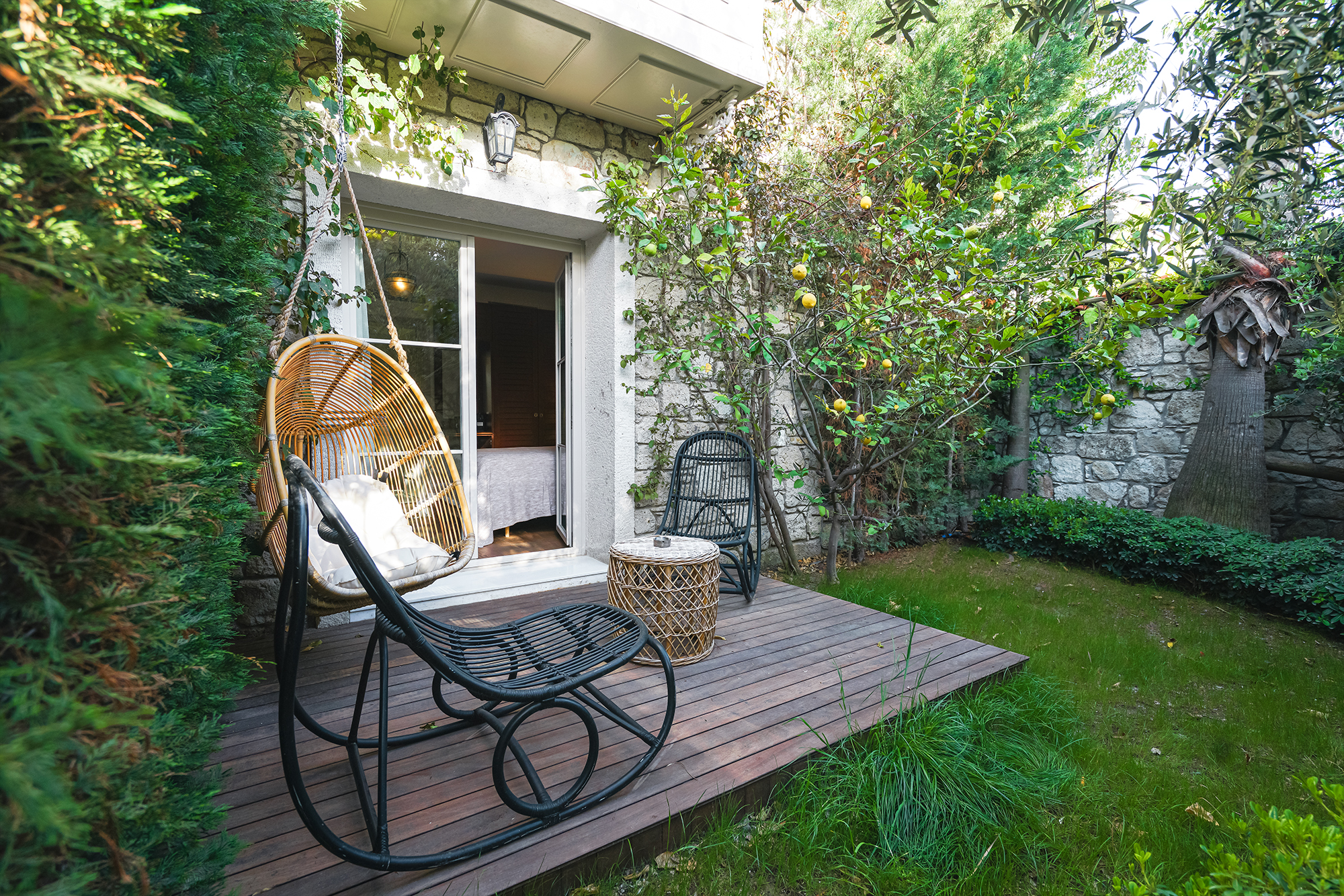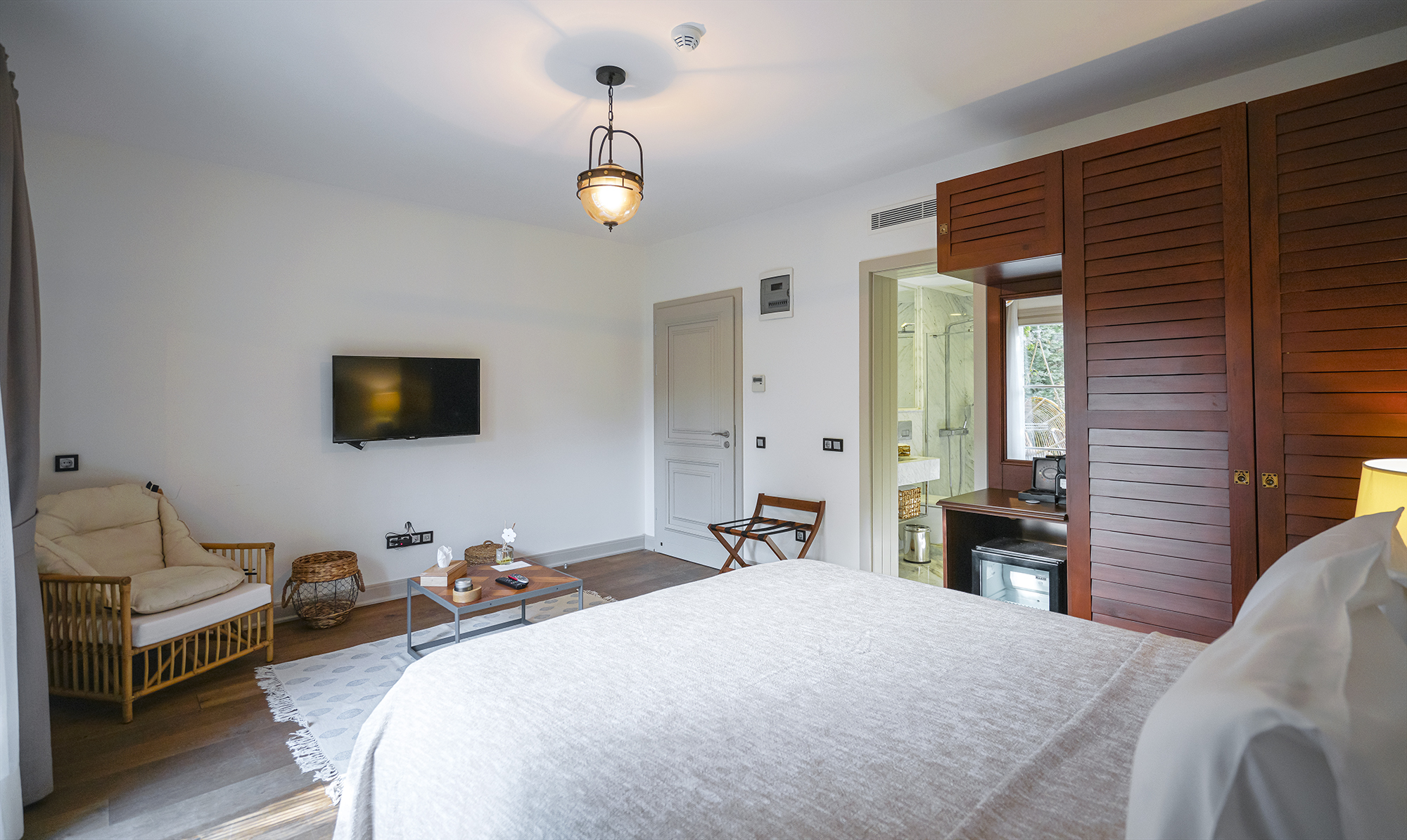 Agrovela Hotel bir yüzünü Alaçatı’nın meşhur yel değirmenine dönmüş, rüzgar güllerini ise arkasına almış, 400 yıllık tarihi taşlardan yapılan, içinde Alaçatı’nın bütün yerel öğelerini barındıran ve hemen önündeki küçük meydan ile Alaçatı’nın kalbinin attığı bir konuma sahip. Odalarımızın Alaçatı’nın yerel özelliklerini yansıtmasını ve misafirlerimizin tatilleri boyunca bölgemizin güzellikleriyle iç içe bir ortamda olmasını arzuladık. Geniş aydınlık odalarımız, taş binalarımızın serinliğini yaz boyunca sizi hissettirecek. Alaçatı mimarisinin vazgeçilmesi cumbalar ise, Alaçatı manzarasına bakıp kahve keyfi yapmak ya da serin bir yaz öğleden sonrası şekerlemesi için ideal.