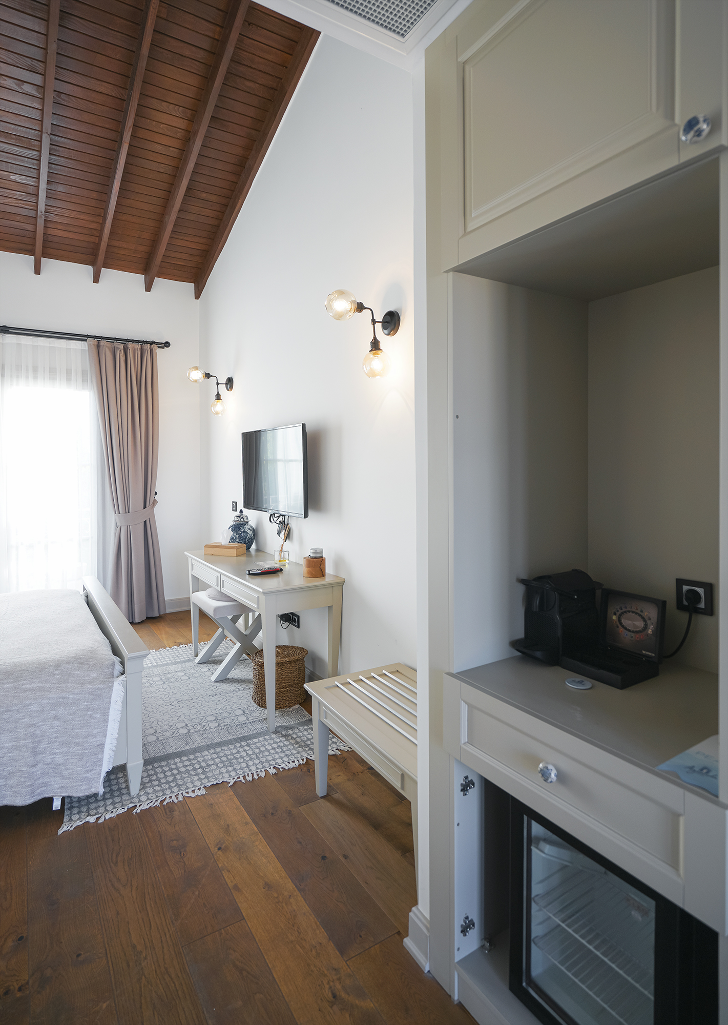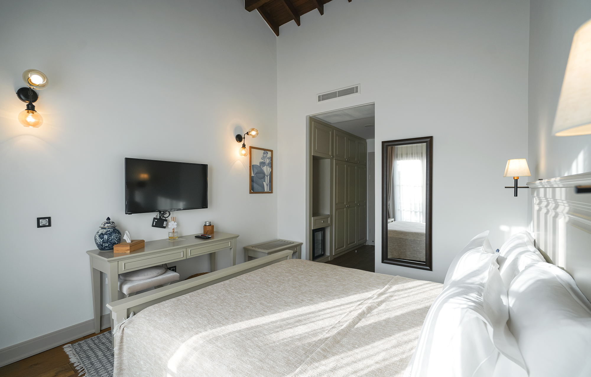 Agrovela Hotel bir yüzünü Alaçatı’nın meşhur yel değirmenine dönmüş, rüzgar güllerini ise arkasına almış, 400 yıllık tarihi taşlardan yapılan, içinde Alaçatı’nın bütün yerel öğelerini barındıran ve hemen önündeki küçük meydan ile Alaçatı’nın kalbinin attığı bir konuma sahip. Odalarımızın Alaçatı’nın yerel özelliklerini yansıtmasını ve misafirlerimizin tatilleri boyunca bölgemizin güzellikleriyle iç içe bir ortamda olmasını arzuladık. Geniş aydınlık odalarımız, taş binalarımızın serinliğini yaz boyunca sizi hissettirecek. Alaçatı mimarisinin vazgeçilmesi cumbalar ise, Alaçatı manzarasına bakıp kahve keyfi yapmak ya da serin bir yaz öğleden sonrası şekerlemesi için ideal.